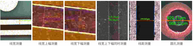 鏡頭使用3X以上的倍率進行測量時,線寬測量精度可達1μm,測量范圍在16-2600μm之間,滿足現代高密精細化線路板的線寬線距等測量需求。
