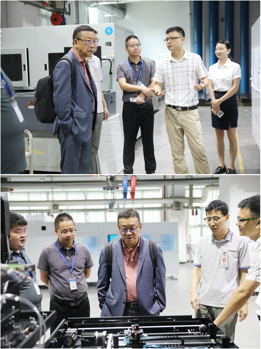 接著,姜旭高博士參觀了公司的設備車間,近距離了解我司的自動化和檢測設備相關情況,對正業科技整體的技術布局、設備的先進性、創新性等表示高度認同和贊揚。