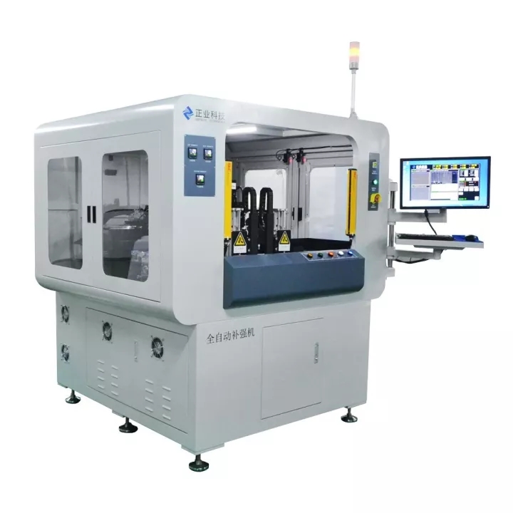 自動補強機是正業科技研發的一款適應于對柔性線路板貼合補強材料的技術成果,也是本次參觀活動的明星產品之一。該款設備實現全自動上下板,自動放隔紙,節省人工成本,可一鍵倒入,換料號只需10分鐘,該款設備貼合精度高:±50um(高精模式),±75um(高速模式),貼片效率快:2500PCS/H(高精模式),4000PCS/H(高速模式)。